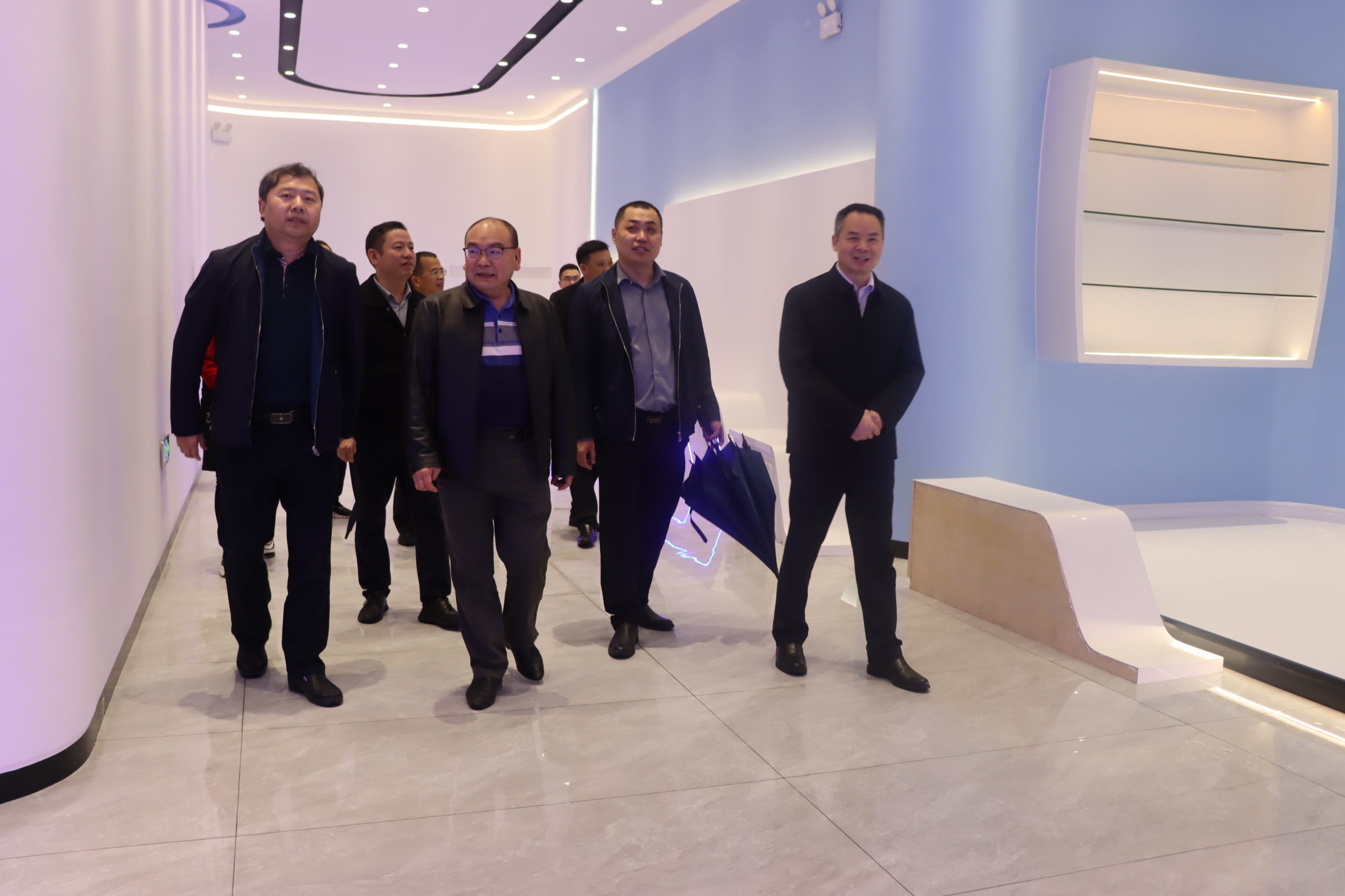 刘贤焕董事长带领刘华益一行参观了公司的研发中心,并详细介绍了高尔德集团的生产经营、研发、项目建设等情况.