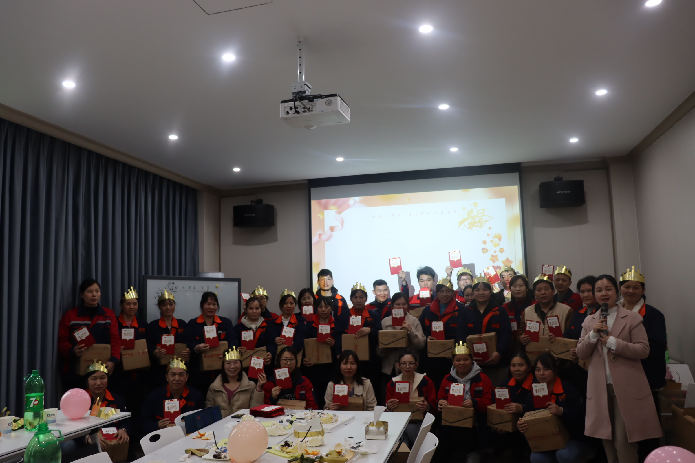 生日会上,公司工会主席胡丽霞为寿星们送上了生日祝福及精美的礼物,祝愿大家工作顺利、身体健康、阖家欢乐!